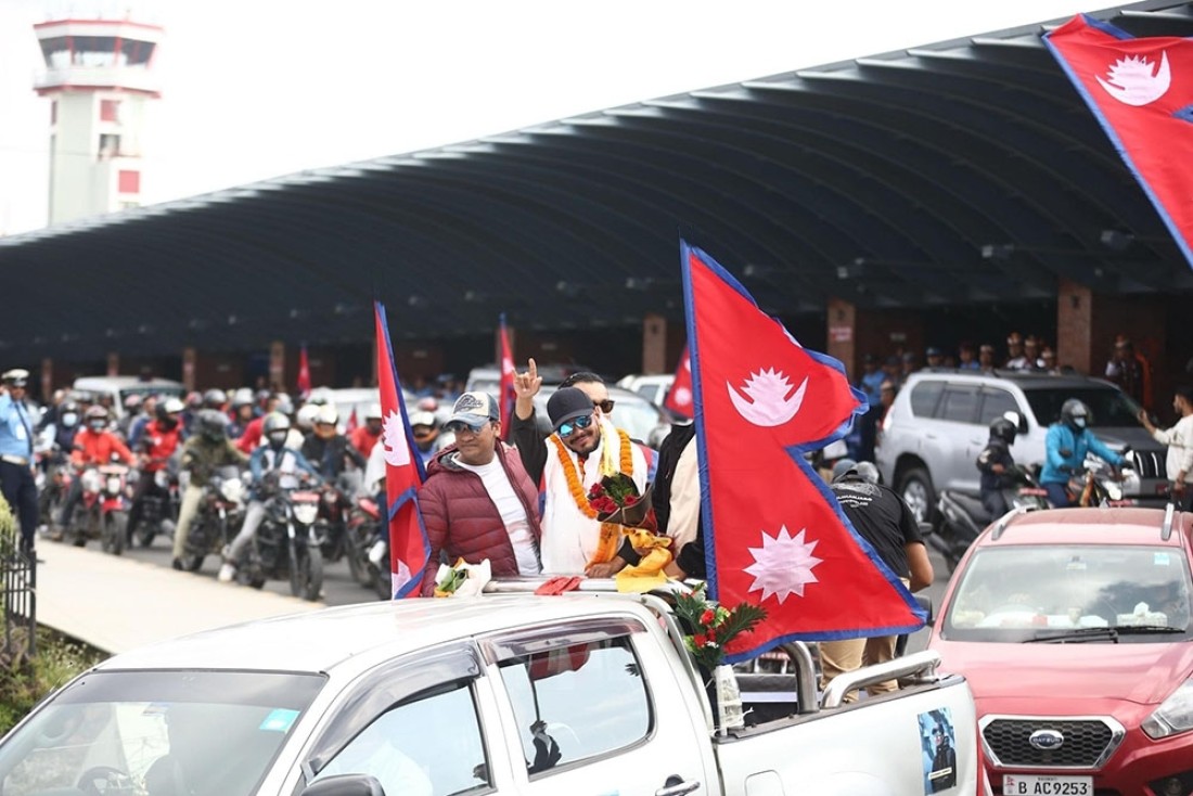 विमानस्थलमा उनको स्वागतमा सयौं युवाहरूले मोटरसाइकल ¥याली निकालेका थिए । उनलाई विमानस्थलबाट गौशाला, चाबहिल हुँदै बौद्ध गुम्बा पु¥याइएको थियो ।